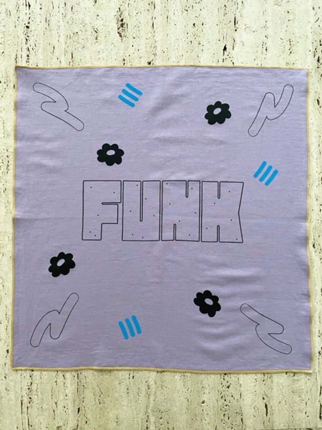 柔らかいコットンリネンの生地 カラーの糸でふちどりしています プリントはシルクスクリーン 大判なのでいろいろ活用していただけます サイズ 50㎝角 素材 コットンリネン カラー ラベンダー