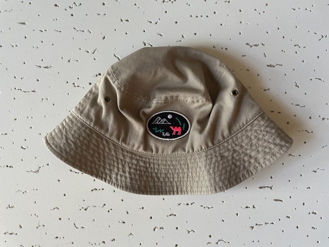 hoopオリジナルワッペン付きのバケットハット ワッペンの縁は蓄光糸なので光を貯めて暗いところで発光します サイズ 58㎝