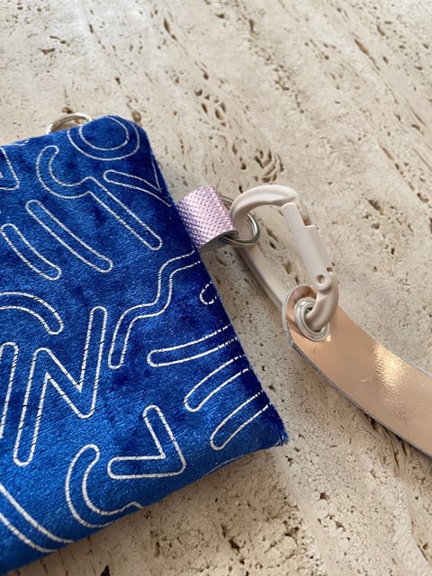 生地はブルーのベロア生地に立体感のある発砲プリント